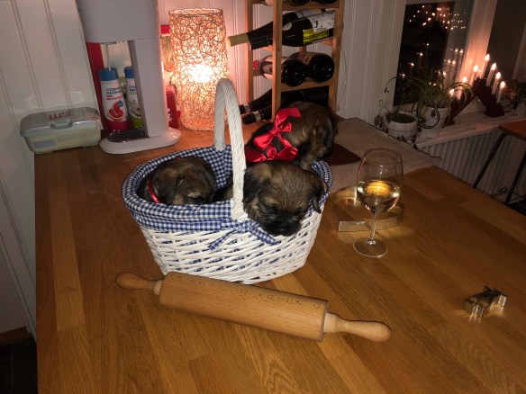 Lekte lite med att ta bilder på valparna- här är dom med och bakar pepparkakor.😂