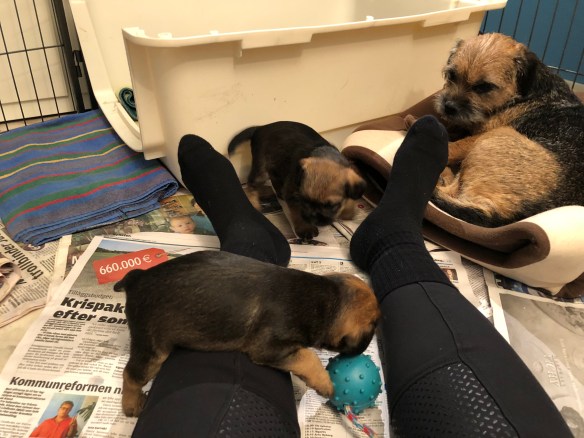 Lekte lite med att ta bilder på valparna- här är dom med och bakar pepparkakor.😂